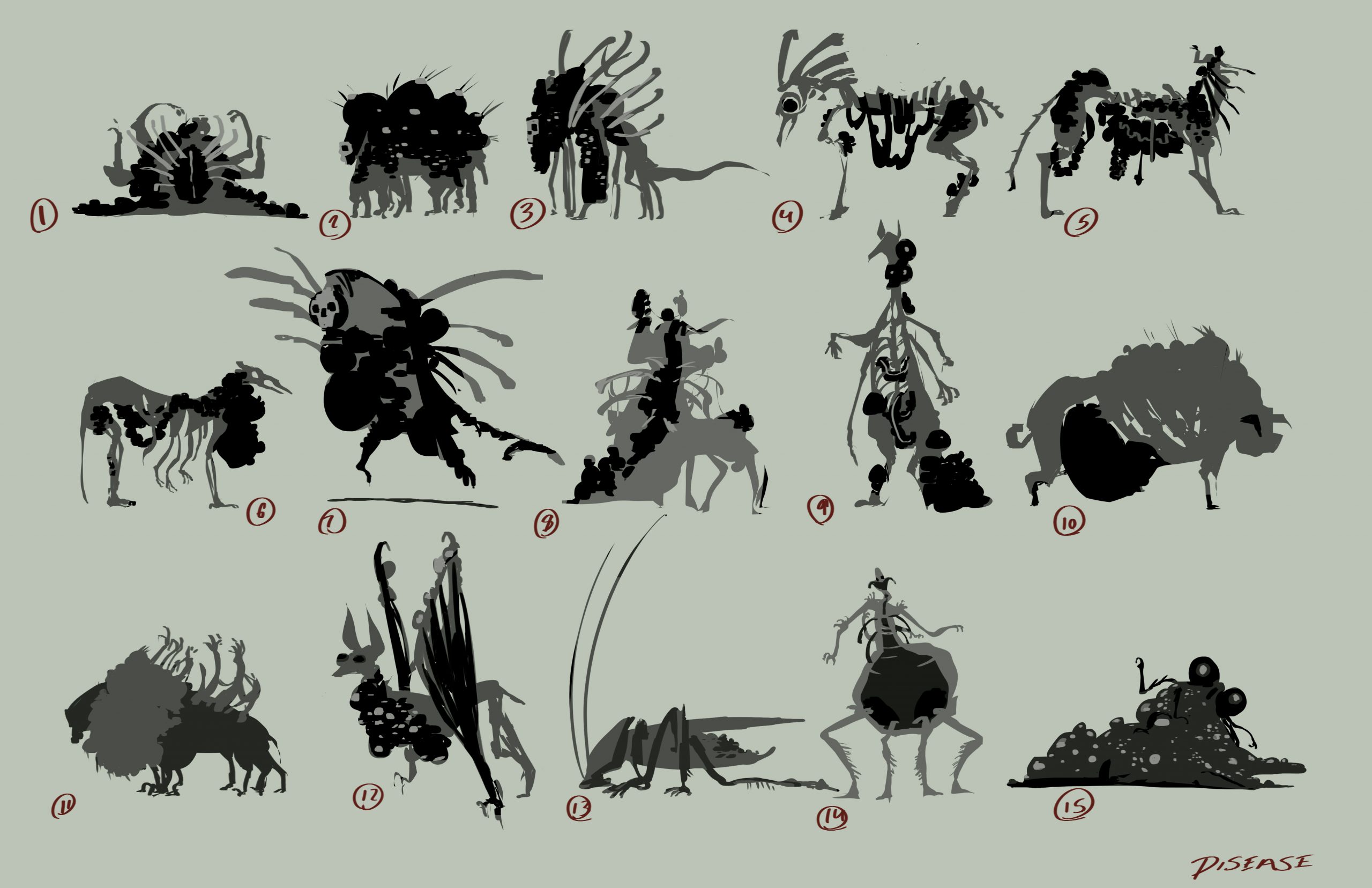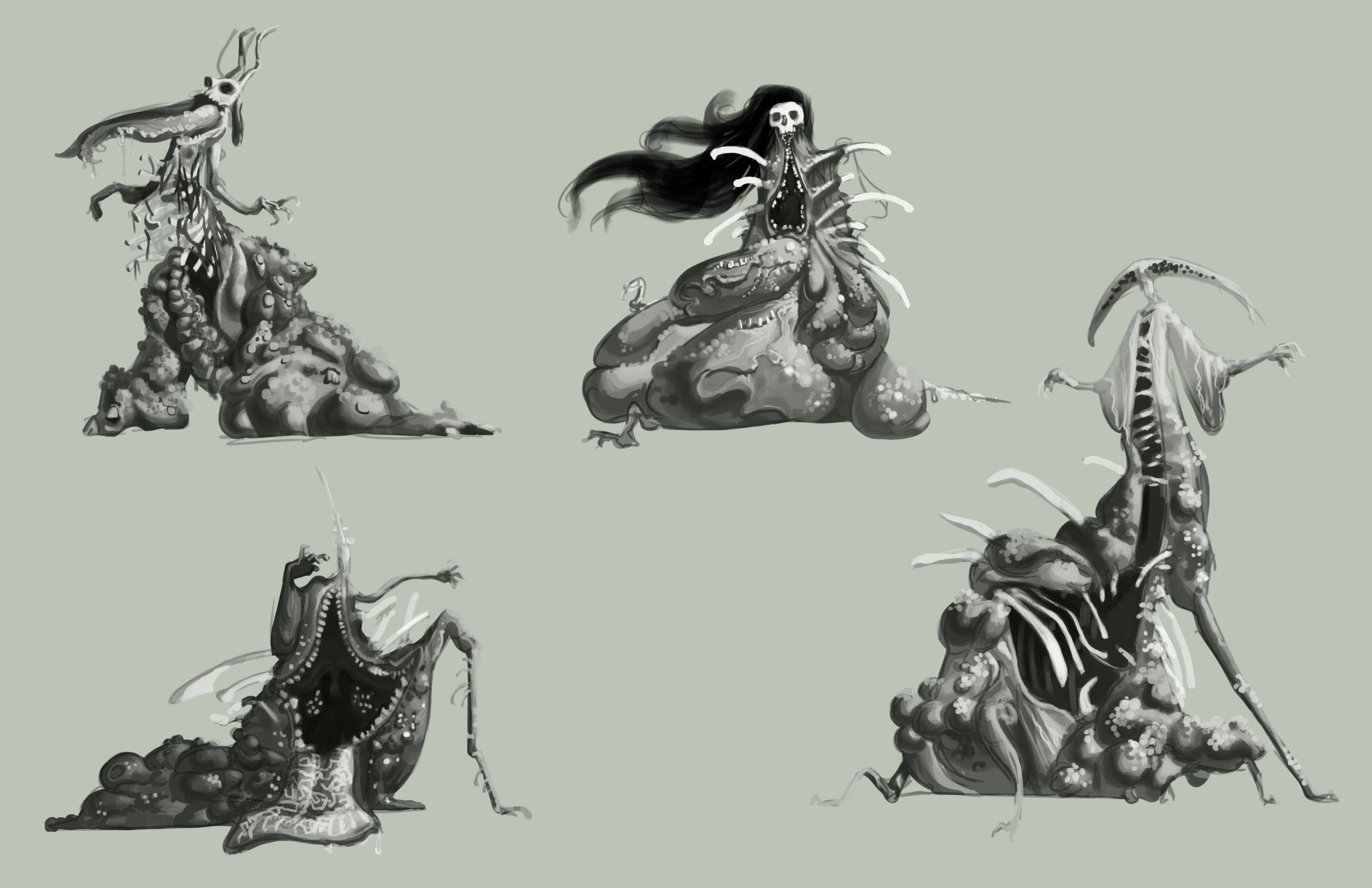 Work done for a 2023 group project to design demons interpreting the Four Horsemen: Disease, War, Famine, Death.