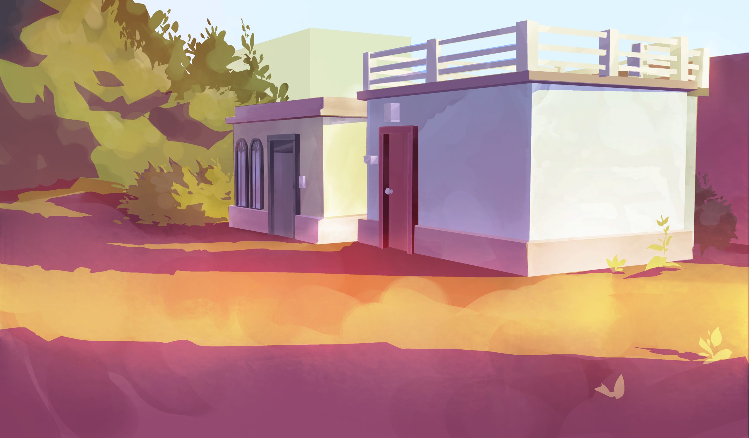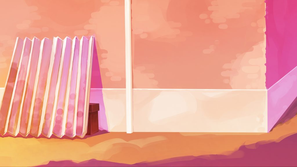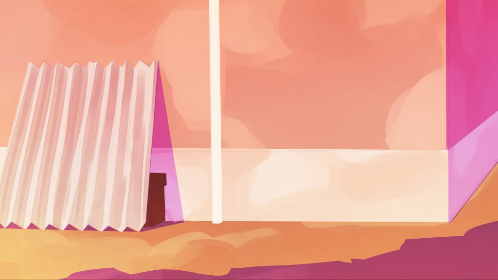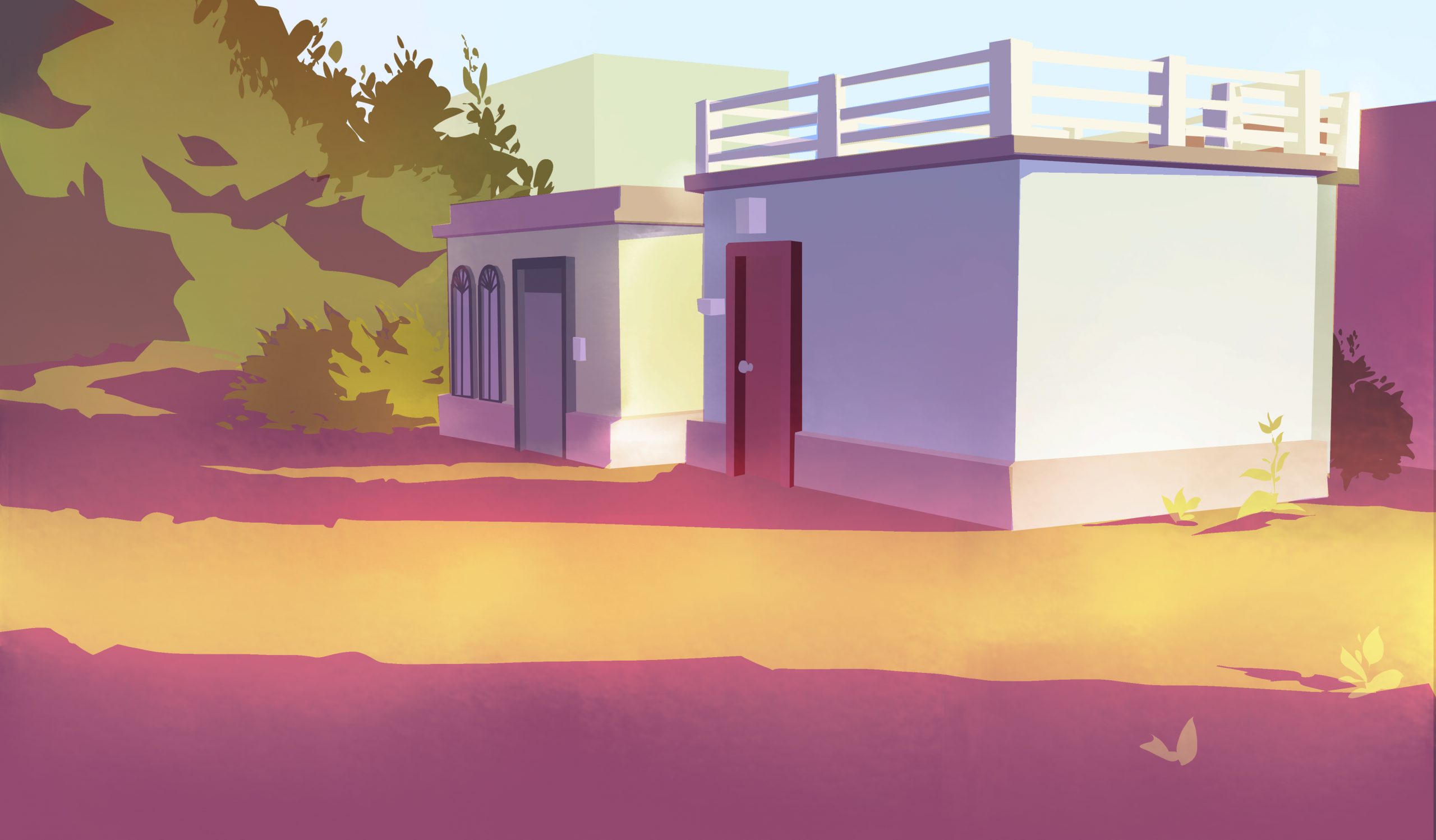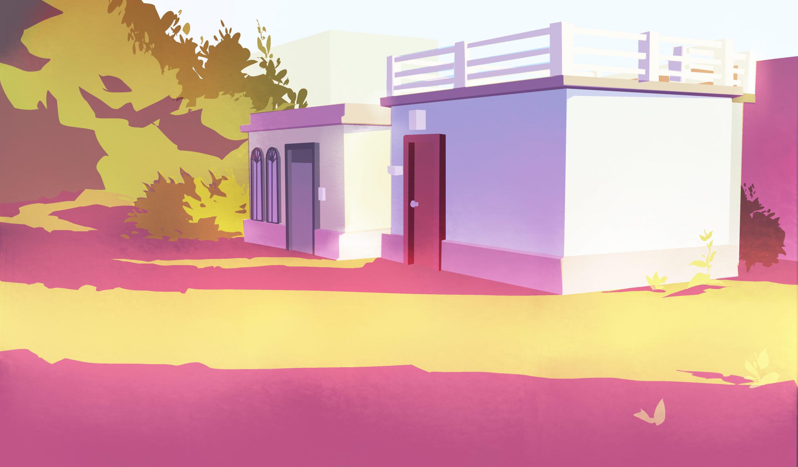 I did the following background for the opening scenes of Gulabi. The scene is set the morning after the Holi festival, and is a tender morning moment. Using the color script and after talking with the director about scene’s significance in the story, our stylistic inspirations, I chose to use cool, punchy pinks in the shadows.