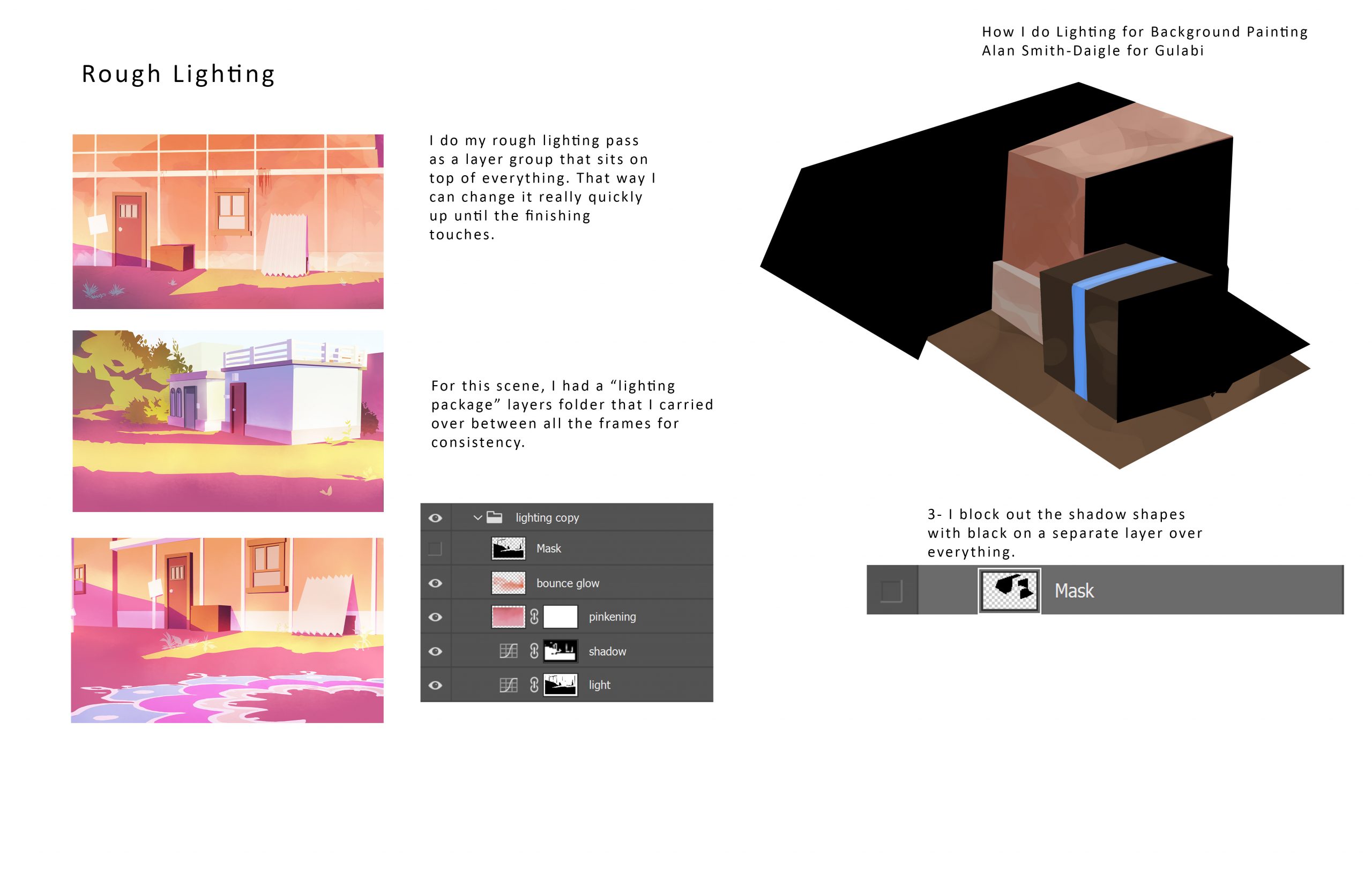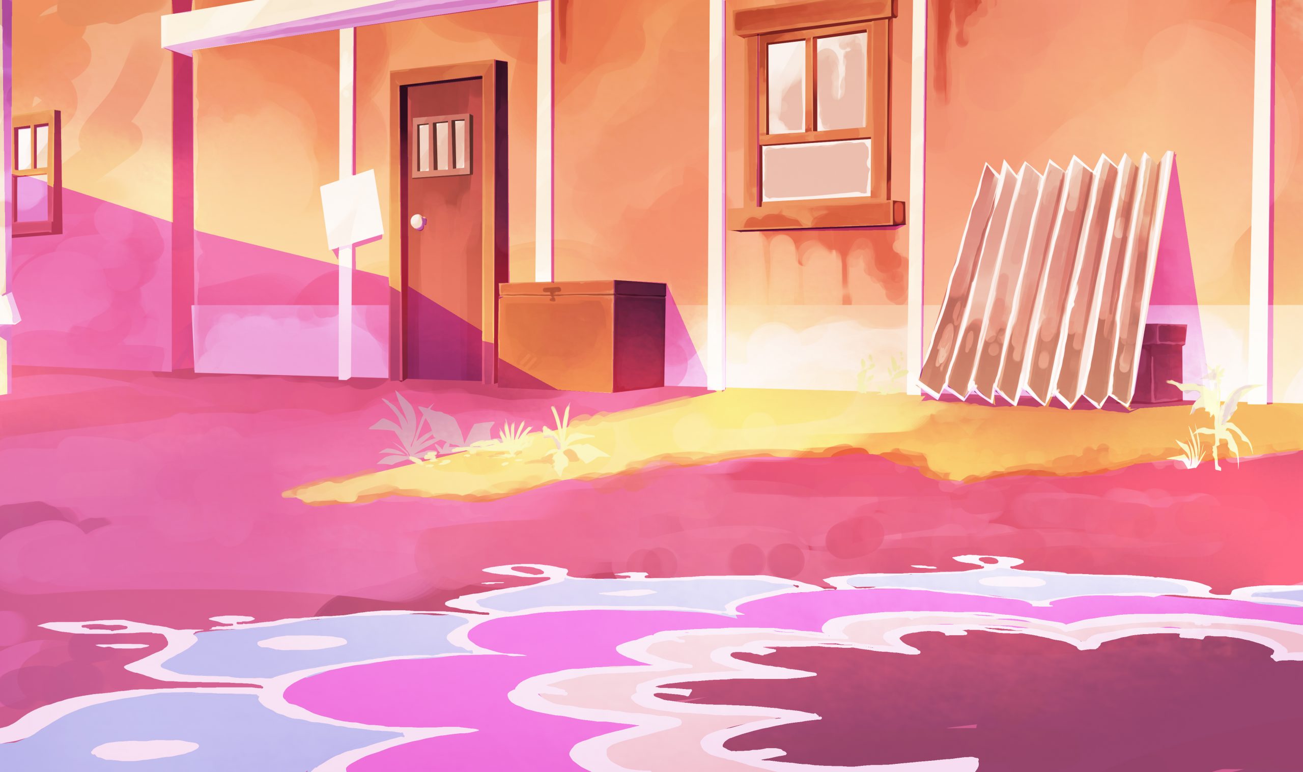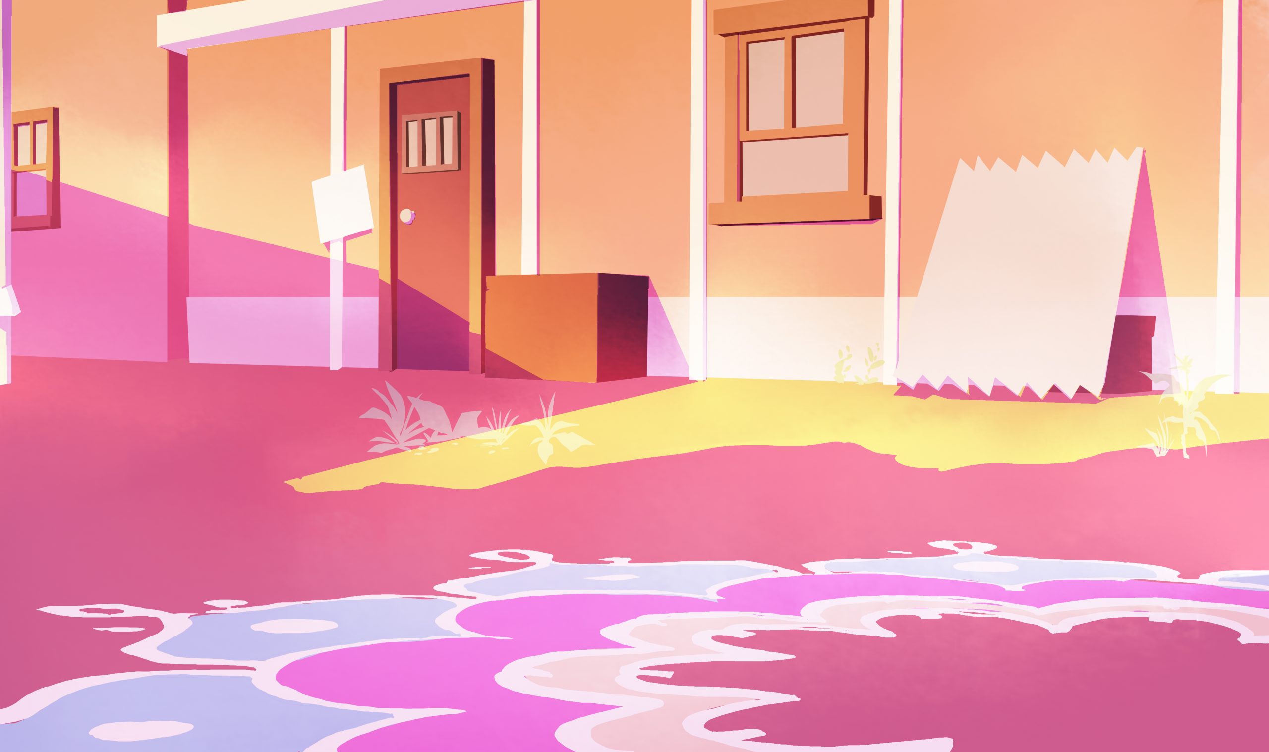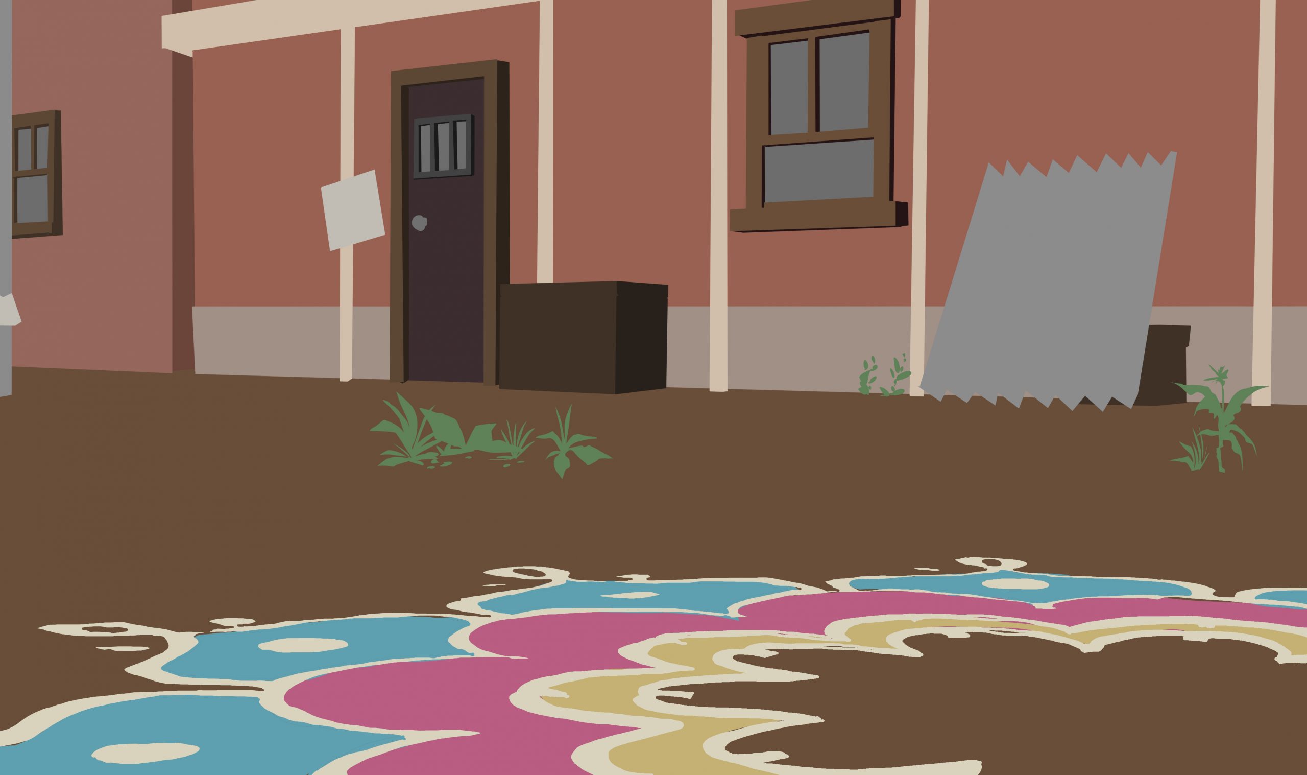 I did the following background for the opening scenes of Gulabi. The scene is set the morning after the Holi festival, and is a tender morning moment. Using the color script and after talking with the director about scene’s significance in the story, our stylistic inspirations, I chose to use cool, punchy pinks in the shadows.