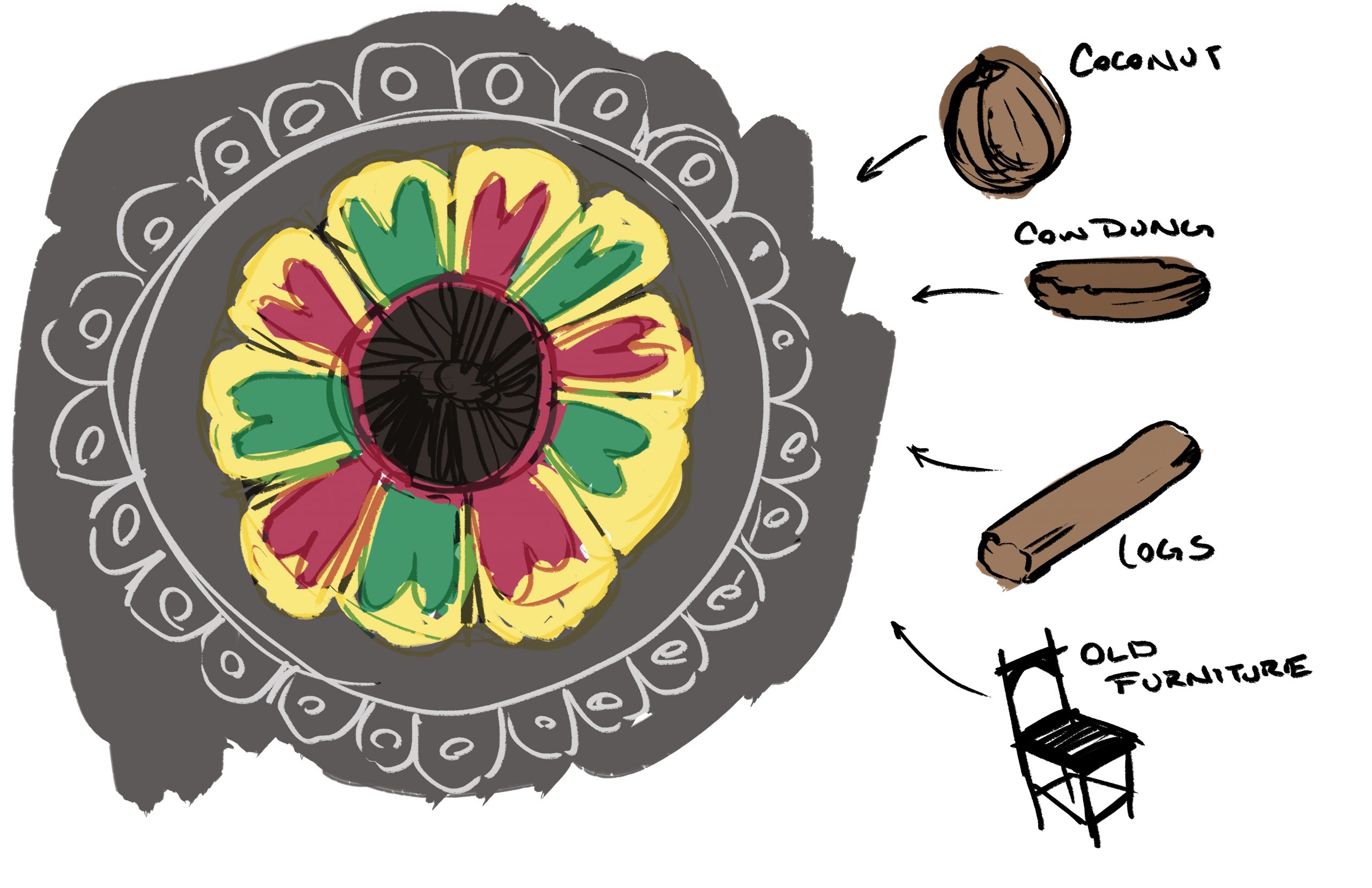 Research, location scouting, and notes done to understand cultural context. During the research and design stages, I also referred to our director’s resource sheets, which included interviews with Indian students and people who had lived in Uttar Pradesh, as well as conducting research on the significance of the Holi Festival and how it would be celebrated specifically in Banda.