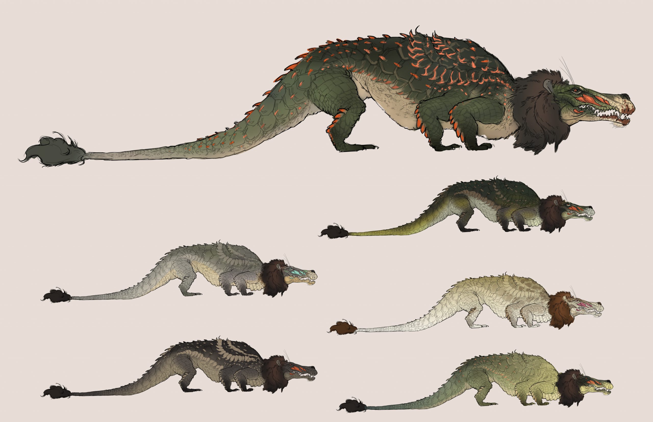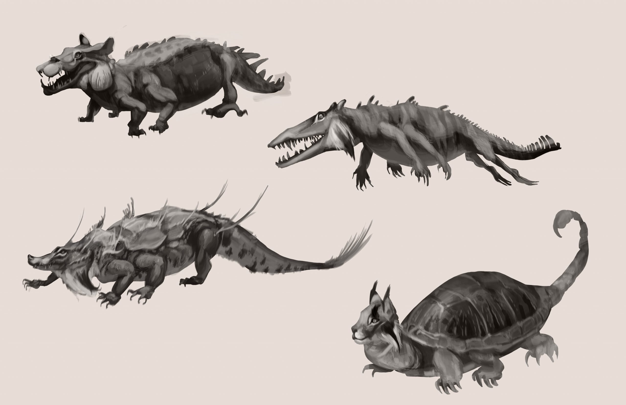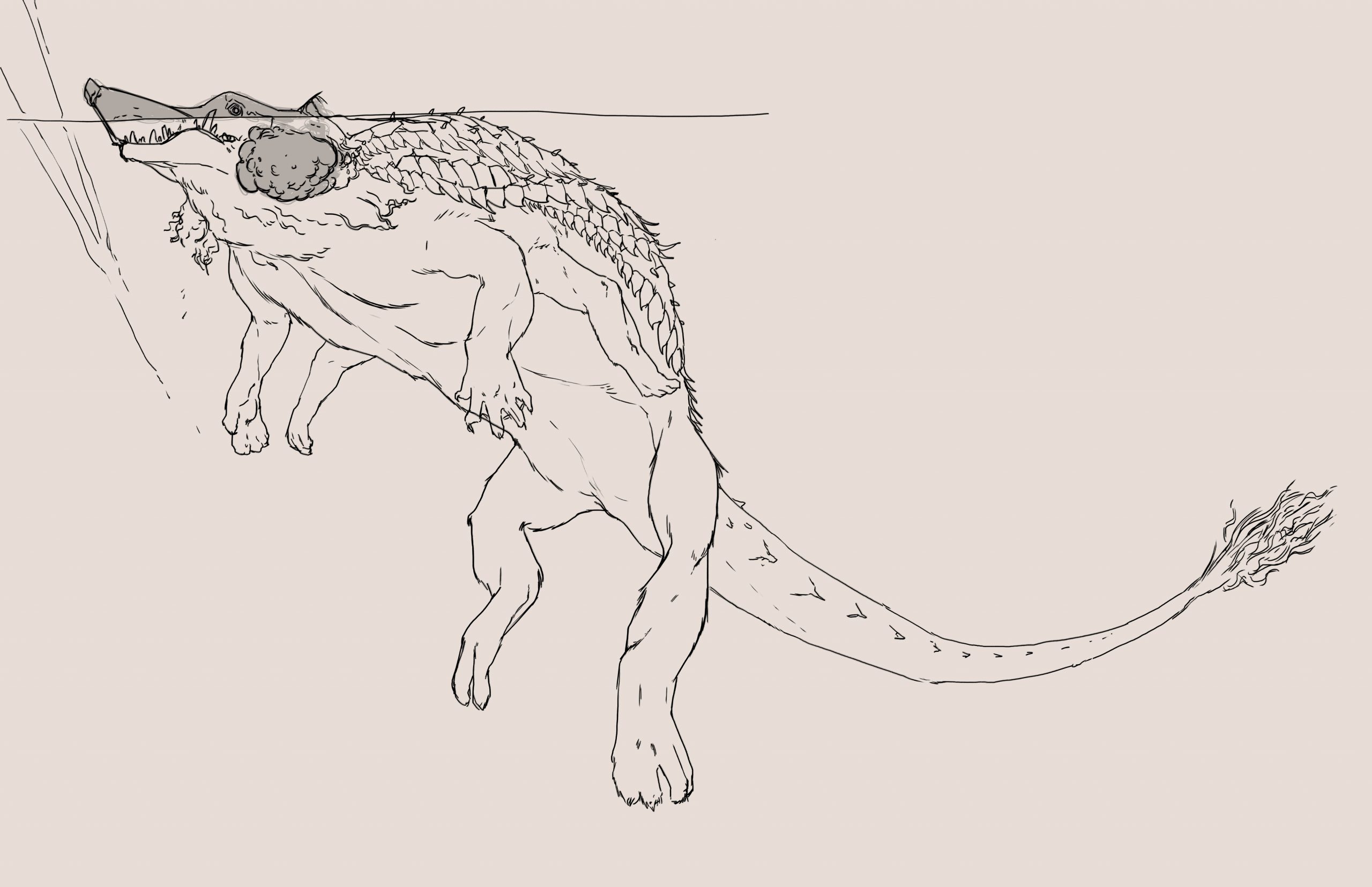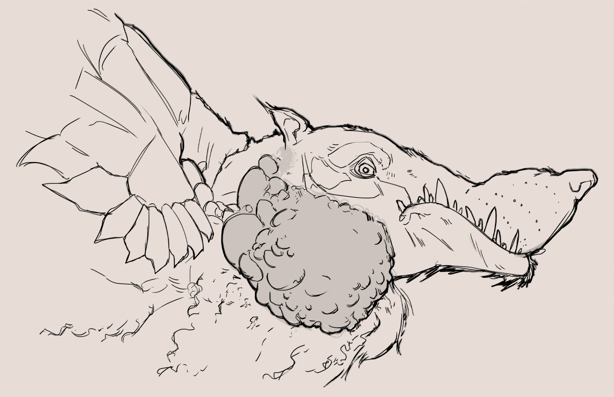 The tarasque presented the unique challenge of combining many different (and conflicting) biological features into a cohesive design. A creature of French legend, the tarasque was said to be a cross-breed from the Leviathan, the biblical sea serpent, and the Onachus, which was a scaly, bison-like beast. The 12th century Pseudo-Marcella describes the tarasque as a half-animal, half-fish dragon, with the face and head of a lion, sharp teeth, the mane of a horse, a turtle’s shell covered in spikes, and six feet with bear-like claws.